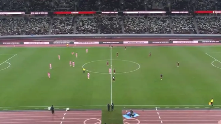 El Estadio Nacional de Tokio vibra con la ovación de los espectadores cada vez que Leo Messi aparece en los monitores.