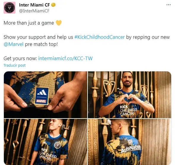En la camiseta, en la que aparecen personajes de los comics de la multipremiada franquicia, predominan los colores azul y dorado, razón por la cuál no tardó en generar especial impacto entre los hinchas de Boca, mucho más atentos al día a día de Inter Miami desde la llegada revolucionaria de Lionel Messi.