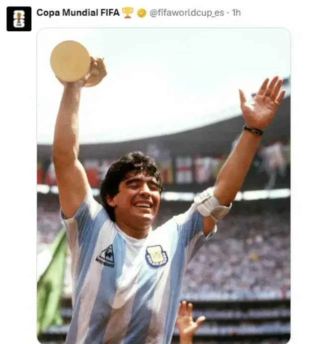 La Pulga seleccionó una foto de Maradona levantando la propia Copa del Mundo allá por México 1986, envuelto en una sonrisa inolvidable. Sí, eligió una imagen en la que se puede ver a Pelusa completamente feliz. La mejor manera de recordarlo e idolatrarlo.