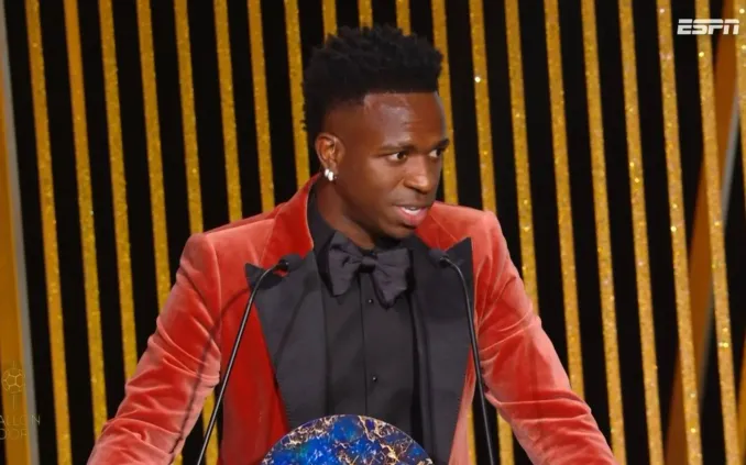 El delantero brasileño fue reconocido en la gala del Balón de Oro 2023 por la labor social que realiza con su fundación y por su lucha contra el racismo, donde ha sido un gran ejemplo durante los últimos años jugando para el Real Madrid.