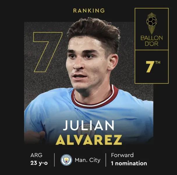 France Football ubicó al ex River en el 7° escalón entre los mejores jugadores de la última temporada tras su enorme aparición en Manchester City y, por supuesto, su participación decisiva con la Selección Argentina en el Mundial de Qatar 2022, como por ejemplo su doblete contra Croacia. Galardón más que merecido.
