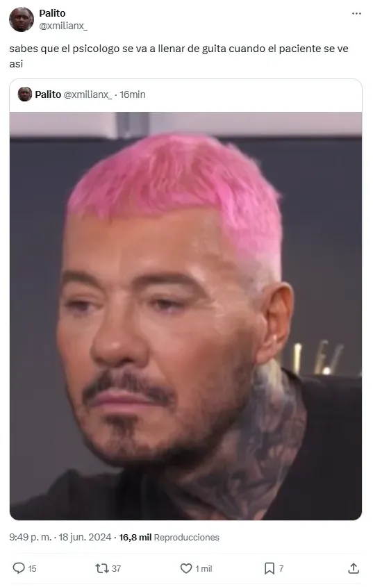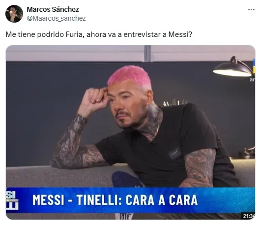 No obstante, lo que más generó repercusión entre televidentes y usuarios de redes sociales no fue precisamente lo que dijo el astro del Inter Miami. Es que Tinelli presentó un nuevo look para entrevistar a Lionel, tiñendo su pelo de color rosa. Inevitablemente, los memes coparon el ambiente digital con distintas comparaciones y chistes que rápidamente se viralizaron entre los espectadores. Repasamos los mejores.