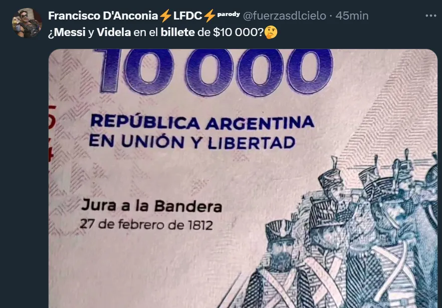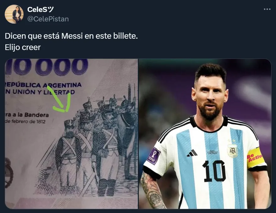 Hace algunos meses, comenzó a circular el billete de $10.000, que es el de mayor denominación dentro de la República Argentina y que equivale a un aproximado de 11 dólares. Y en el dorso del mismo figura una imagen que se viralizó en las redes sociales, principalmente en X (ex Twitter), y muchos usuarios aseguraron que se trata del actual capitán de la Selección Argentina.