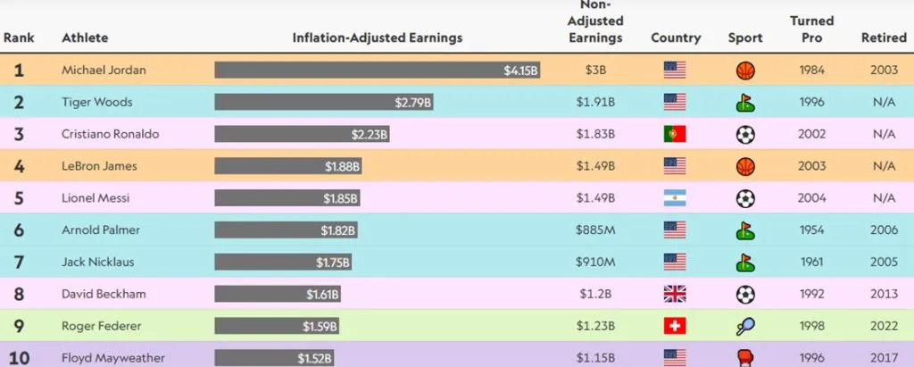 ¿Quién es el deportista que más dinero acumuló en su carrera?