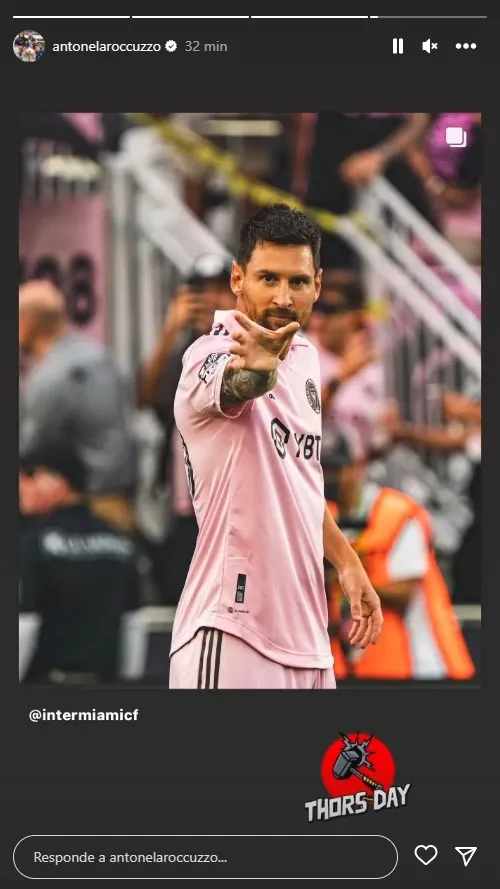 A través de una storie en Instagram, donde comparte la imagen de Lionel que tanto se viralizó desde su último partido con el conjunto de Florida, Anto develó la verdad con un sticker de Thor, personaje ficticio de los cómics de Marvel basado en la mitología nórdica. Una referencia más que Messi le hace a los superhéroes.