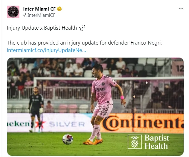 Se trata de Franco Negri, uno de los tres argentinos que militan en el equipo, con pasado en Newell’s. El defensor, sin embargo, sufrió una lesión de ligamentos en el último partido ante Philadelphia Union y al parecer se perderá no solo lo que resta de la temporada sino además la gran oportunidad de compartir cancha con Messi.