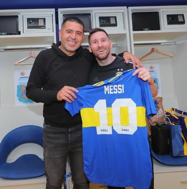 En marzo de 2022, la Selección Argentina disputó un encuentro ante Venezuela en La Bombonera (triunfo por 3 a 0) y el vicepresidente de Boca, Juan Román Riquelme, también quiso agasajar al 10 con una camiseta del Xeneize.