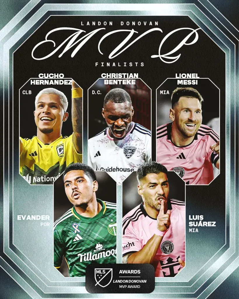 Además de Messi y Suárez, la liga norteamericana se decantó por el colombiano Cucho Hernández, de Columbus Crew, Christian Benteke, de DC United y goleador de la fase regular, y Evander, volante de Portland Timbers para el premio que lleva el nombre de Landon Donovan desde su retiro.