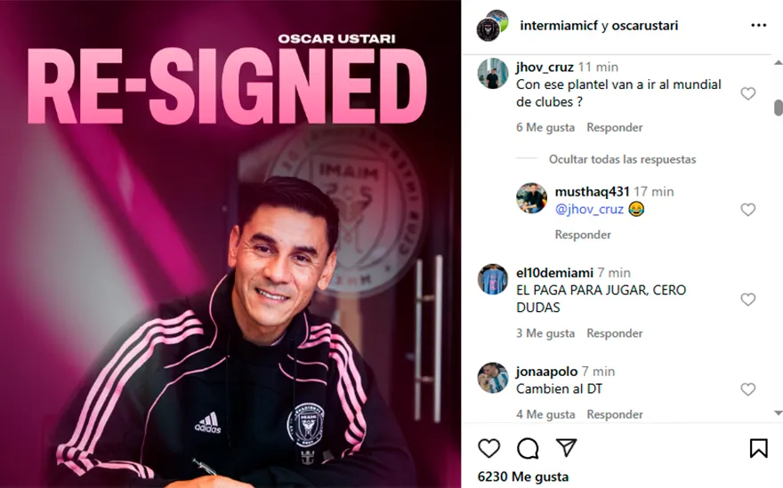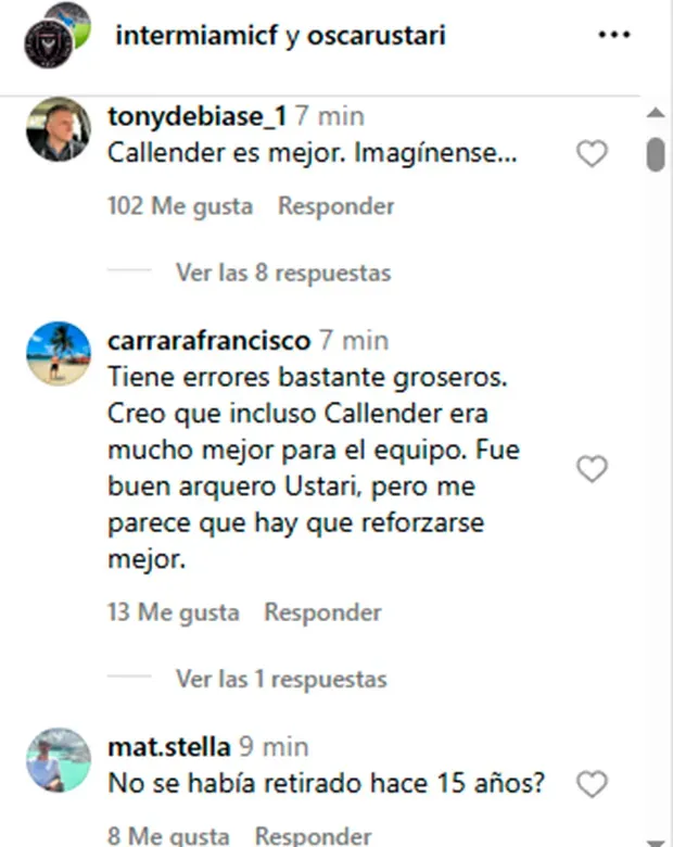 Sin sentirse satisfechos con las opciones en el puesto, un importante números de hinchas y seguidores de Inter Miami no recibió bien el anuncio de la renovación de Ustari, algo que quedó reflejado en las respuestas al anuncio que el club hizo desde sus redes sociales oficiales.