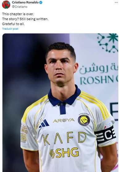 Tras este decepcionante resultado, tomó sus redes sociales y confirmó a sus seguidores que no continuará en el equipo saudí. “Este capítulo ha terminado. ¿La historia? Aún se está escribiendo. Agradecido a todos”, sorprendió este lunes el delantero portugués con una publicación en sus redes sociales.