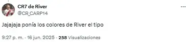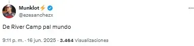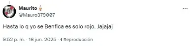 En redes sociales, los hinchas de River celebraron el tanto de uno de los suyos, fanático confeso del Millonario. Incluso destacaron una publicación de la cuenta oficial en español del Mundial de Clubes. “OTAAAAAA”, anunciaron con emojis rojiblancos, color que coincide con la camiseta de Benfica.