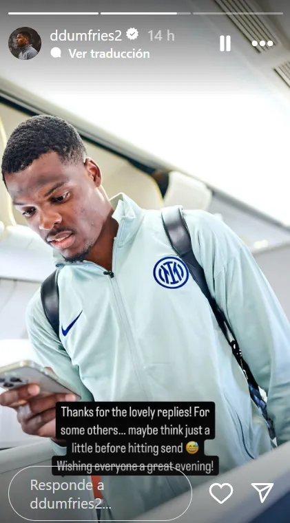 Tras haberse retirado del estadio sin dar declaraciones, el neerlandés se mostró activo en su cuenta de Instagram casi 24 horas después de lo sucedido. A través de una historia, el defensor dejó un contundente mensaje luego de la repercusión que tuvo su altercado con el campeón del mundo.