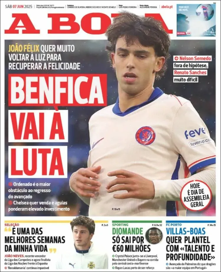La noticia fue portada del medio deportivo por excelencia en Portugal, A Bola, que confirmó el interés del club luso por traer de regreso al futbolista de 25 años. “Benfica va a luchar. Ya solucionaron el mayor obstáculo y su regreso está avanzado. Chelsea lo quiere vender y las águilas consideran una inversión elevada“, detalla el medio.
