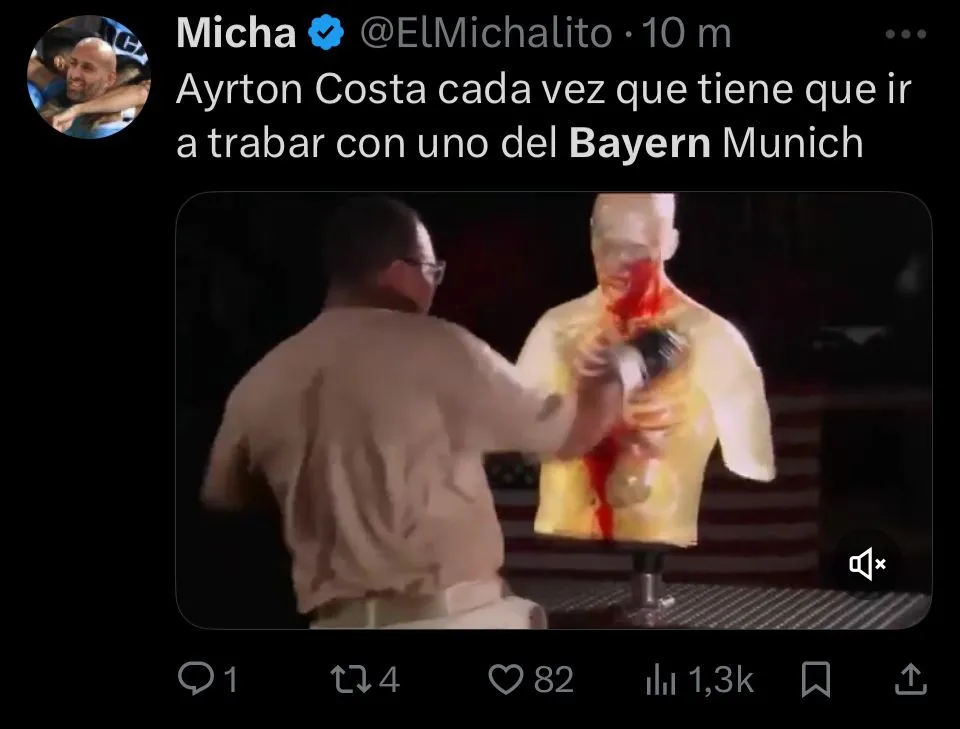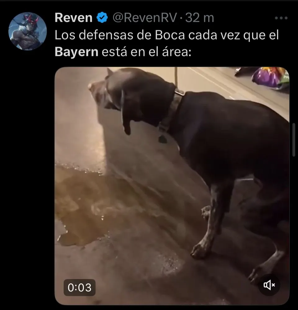 Los goles del Bayern Múnich fueron, sin dudas, los momentos que más memes generaron, especialmente de parte de los hinchas de River celebrando el resultado desde el ingenio. A eso se sumó el empate de Merentiel y ciertas decisiones o situaciones del Xeneize que también se convirtieron en blanco del humor en redes.