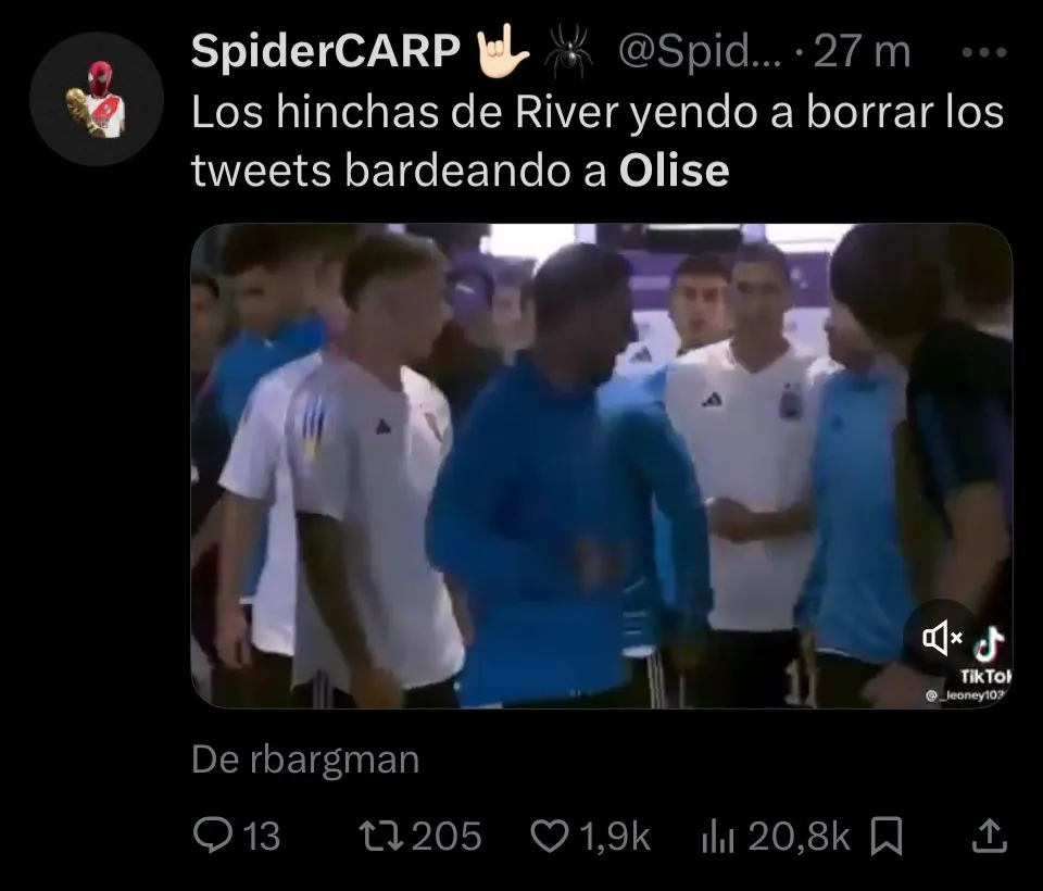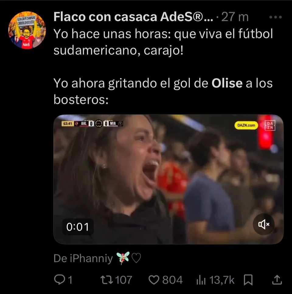 El encuentro, desde el primer minuto, generó revuelo en redes sociales. Las distintas situaciones del juego, sumadas al peso de ambos rivales y al contexto internacional del torneo, desataron la creatividad de los usuarios, que no tardaron en transformar lo que pasaba en el campo en contenido viral. Tanto hinchas de Boca como de River, sumando también a neutrales, usaron el partido como excusa para sumarse al folklore futbolero con memes y reacciones que circularon durante el partido y explotaron aún más tras el pitazo final.