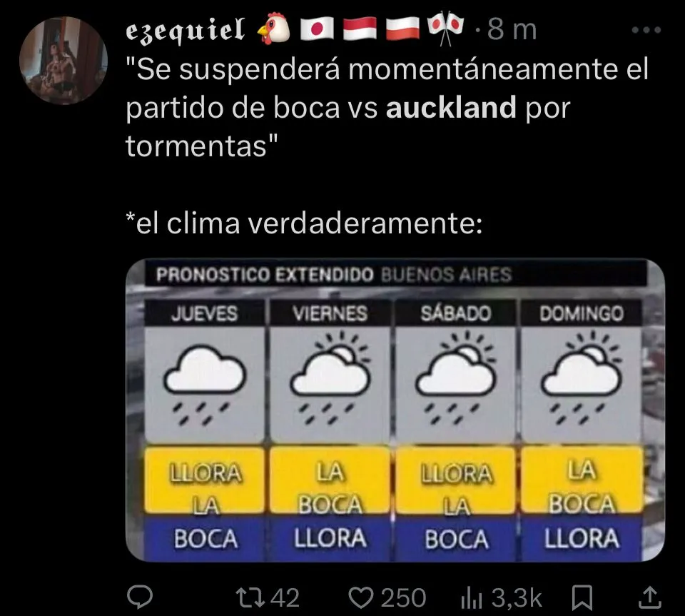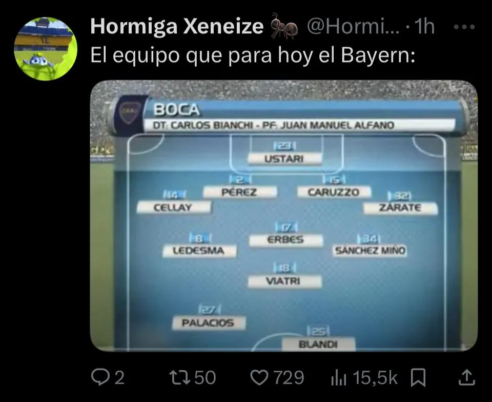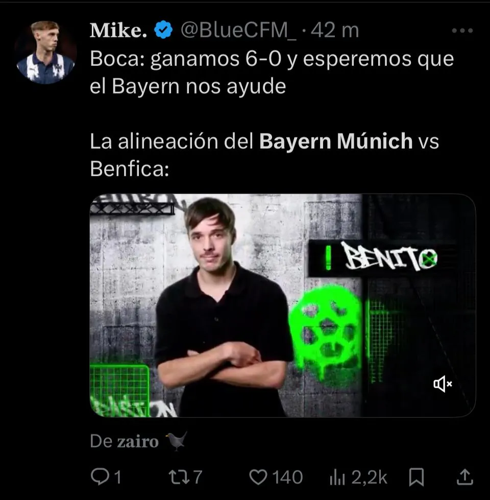 La catarata de memes inundaron las redes sociales desde la previa, con las reacciones a la rotación que utilizó el Bayern en su formación. Aunque más tarde seguiría con los tantos de Boca y Benfica, pero sin dudas que la revolución llegó en el momento del empate de Auckland. Acto seguido, publicaciones de todo tipo salieron a la luz. Desde chistes del público xeneize para tomarse con humor la situación, hasta festejos de aquellos que anhelaban por la eliminación.