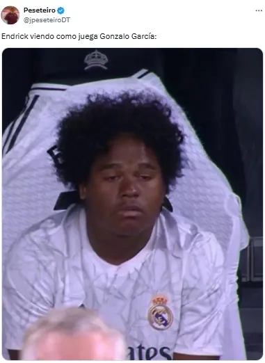 Durante todo el duelo entre el Merengue y la Vecchia Signora, los futboleros en las redes no solo vibraron con el partido que entregaron estos grandes de Europa, sino que también acompañaron con memes. Endrick, por su falta de protagonismo, y la irrupción de García fueron grandes ejes de los chistes.