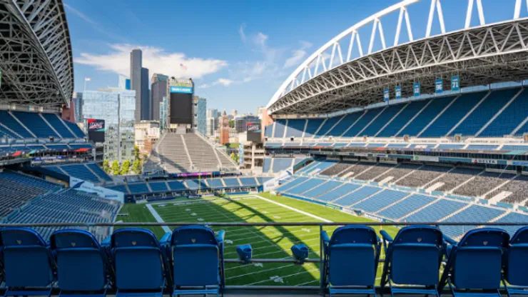 Las tribunas empiezan a teñirse de rojo y blanco en el Lumen Field Stadium de Seattle.