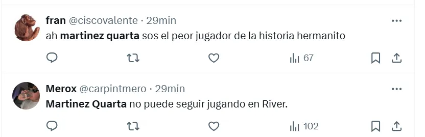Los comentarios de los hinchas de River sobre Martínez Quarta
