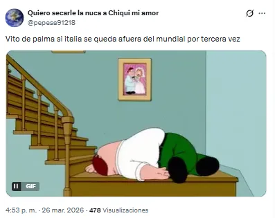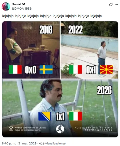 Con este desenlace, las redes sociales se llenaron de burlas para la Selección de Italia, que no levanta cabeza. Además de no haber participado en las últimas tres ediciones, también acumula dos eliminaciones en fase de grupos, en 2010 y 2014. Una racha insólita para los cuatro veces campeones del mundo.