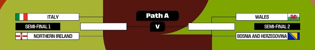 Allí se descubrió que Italia enfrentará a Irlanda del Norte como local. Y, en caso de ganar, será visitante del vencedor de Gales vs. Bosnia-Herzegovina, equipos que fueron sorteados en la otra semifinal de la misma ruta de repechaje.