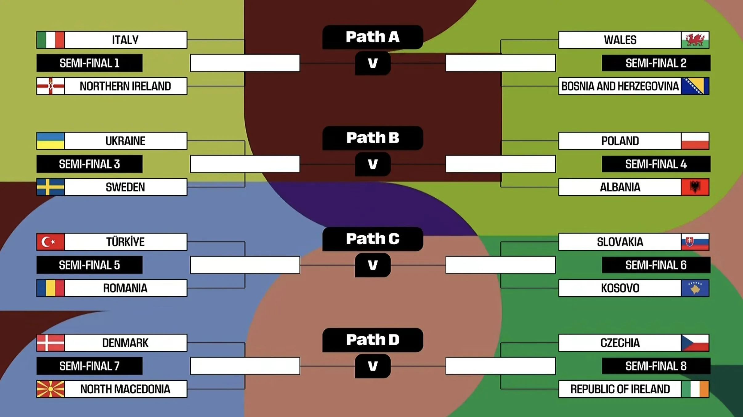 - Semifinal 2: Gales vs. Bosnia y Herzegovina