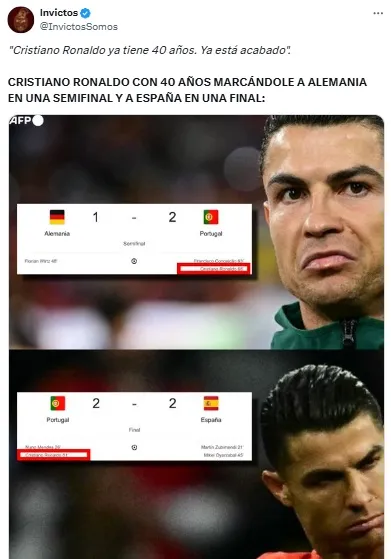 Con tantos de Oyarzábal y Zubimendi, y el empate transitorio de Nuno Mendes, la Roja tomó la delantera hacia el entretiempo. Pero tras el descanso el inoxidable CR7 volvió a poner el partido en tablas haciendo estallar no solo a los hinchas de Portugal, sino también a los fanáticos del fútbol en general.