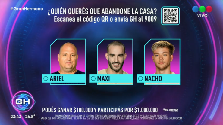 Luego de las nominaciones semanales, quedó definido que Ariel, Maxi y Nacho integren la placa final para este domingo 22 de enero. Por su parte, si bien fue de los más votados por sus compañeros,Agustín fue salvado por el líder Marcos.