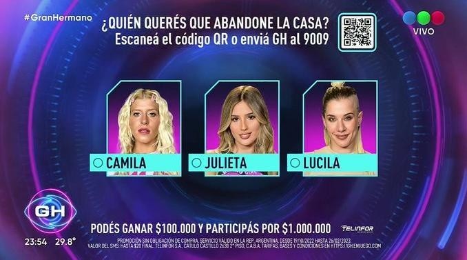 En una semana atípica, donde el liderazgo fue definido por el “Supremo” a través del voto telefónico, Marcos se convirtió en el líder semanal, ganándole el mano a mano a Nacho. Tras las resoluciones de la gala de nominación, el “Primo” decidió salvar a Romina, dejando en placa a Camila, Julieta y Lucila.