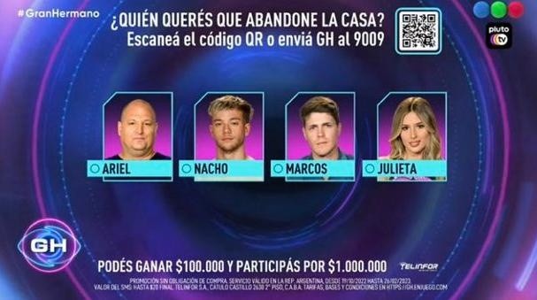 A diferencia de la última gala, la placa final de este domingo será muy extensa. Los nominados de la semana son Ariel, Nacho, Marcos y Julieta, entre los cuales dos serán salvados en primer lugar por el público, y otros dos definirán mano a mano quién no continúa en el certamen.