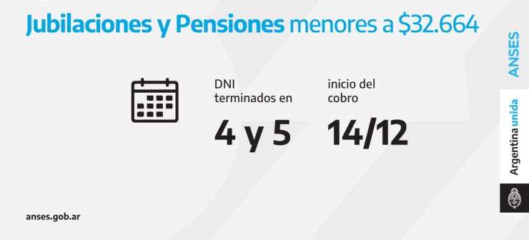 - Cobran este martes los documentos terminados en 4 y 5 cuyos haberes no alcancen la suma de 32.664 pesos.