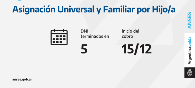 - Hoy cobran titulares de AUH con documentos concluidos en 5 en la misma cuenta de la prestación.