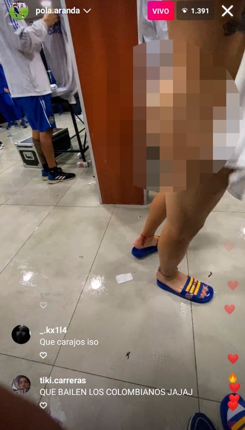 Además de varios cantitos contra River, captados en el “live” de Darío Benedetto, otra de las imágenes curiosas de la jornada estuvo presente en la emisión de Gabriel Aranda, juvenil del club de La Ribera. De manera insólita, al defensor se le olvidó mover la cámara de su celular mientras uno de sus compañeros se paseaba desnudo en plena celebración y la foto se volvió viral en redes sociales, generando una ola de memes.