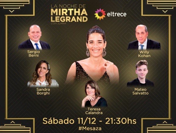 La Noche de ML será transmitida por El Trece el sábado a partir de las 21.30 horas. Al día siguiente, Almorzando con Mirtha Legrand tendrá su mesaza desde las 13.30 horario local y podrá visualizarse por el mismo canal.