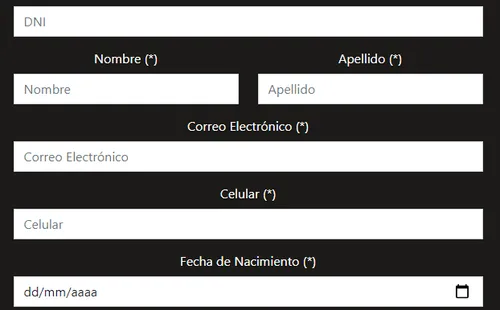 - Completar DNI, nombre y apellido, correo electrónico de contacto, teléfono móvil y fecha de nacimiento.