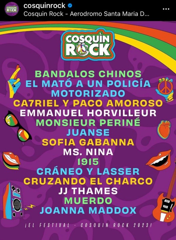 Continúa la preparación para el Cosquín Rock 2023, que se llevará a cabo entre el 18 y el 19 de febrero del próximo año. Ante esto, el evento ya dio a conocer el Line UP y, a continuación, te damos todos los detalles.