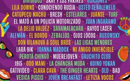 Tiestö, Fito Páez, Ciro y los Persas, Babasónicos, La Vela Puerca, Las Pastillas del Abuelo, Dillom, Ca7riel y Paco Amoroso, Airbag, Las Pelotas, Caras Extrañas, Monsieur Periné, Bándalos Chinos, Lisandro Aristimuño, Emmanuel Horvilleur, Ms Nina, Taichu, Sofia Gabanna, Cráneo & Lasser, El Plan de la Mariposa, Peces Raros, Fiesta Katana, Cruzando el charco, Silvestre y la Naranja, Vetusta Morla, Jóvenes Pordioseros, Muerdo, Manu Martínez, JJ Thames, El Zar, Feli Colina, Santa Salut, Intendente, Paz Carrara, El Doctor, Los Masones, The Rhythm Gamblers, El Vuelto, Los Búfalos Sedientos, Zenón Pereyra, Ronpe 99, The Colorated, Agustina Giovo, Nanda Moura & Toyo, Santoz, Mia Zeta, 29 Caminos, Anyi, Cata Raybaud. Gloria Aguilar y Cruxados, Caliope Family.