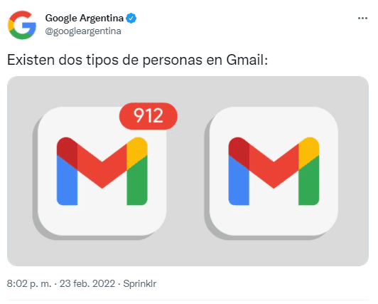 Esta noche, el vehículo fue un tuit de la cuenta oficial de Google Argentina. El CM del buscador (al parecer, fana de River)bromeó con las personas que no leen sus mails y tuiteó: “Existen dos tipos de personas en Gmail”.