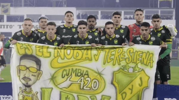 Además del respetuoso silencio en la previa del partido, los jugadores dirigidos por Sebastián Beccacece posaron para los reporteros gráficos sosteniendo una bandera dedicada al artista argentino con una de sus frases de cabecera. “Es el Noba y te re suena”, decía el trapo que ilustraba al cantante junto al logo de la cumbia 420.