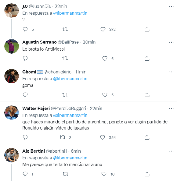 Los comentarios de los fanáticos de Lionel no tardaron en aparecer, junto a una catarata de citas (más de 800) al tuit del periodista. No es la primera vez que Liberman es indiferente con la Pulga y los hinchas de la Selección le hacen saber su descontento cada vez que tienen la oportunidad.