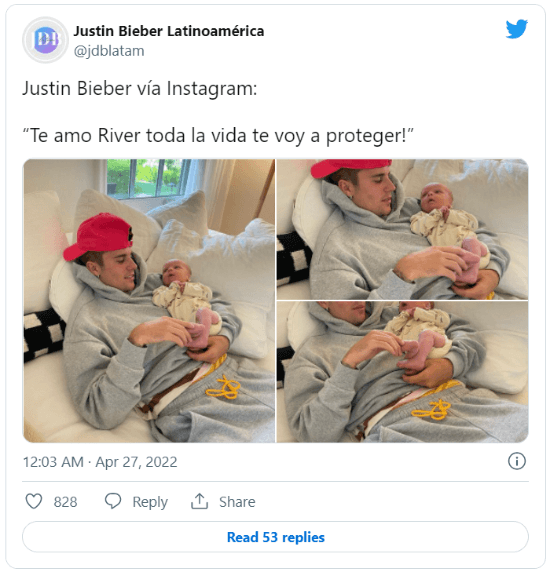 Resulta que el artista subió una imagen junto a un bebé, hijo de su amigo Jason Kennedy. “Te amo Ryver. Toda la vide te protegeré”, escribió en su cuenta de Instagram. Una cuenta de Twitter replicó este textual, pero reemplazó la Y por la I para que quede “River”.