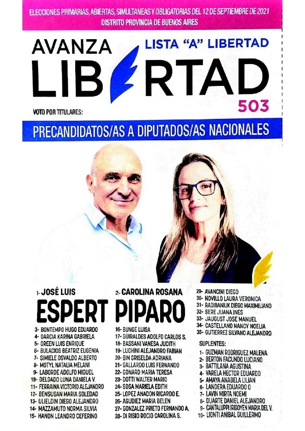 - Avanza Libertad: José Luis Espert – Carolina Píparo