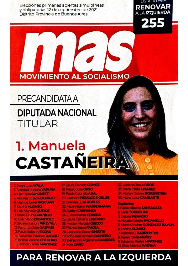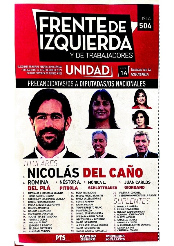 - Frente de Izquierda – Unidad de la Izquierda: Nicolás Del Caño – Romina Del Pla