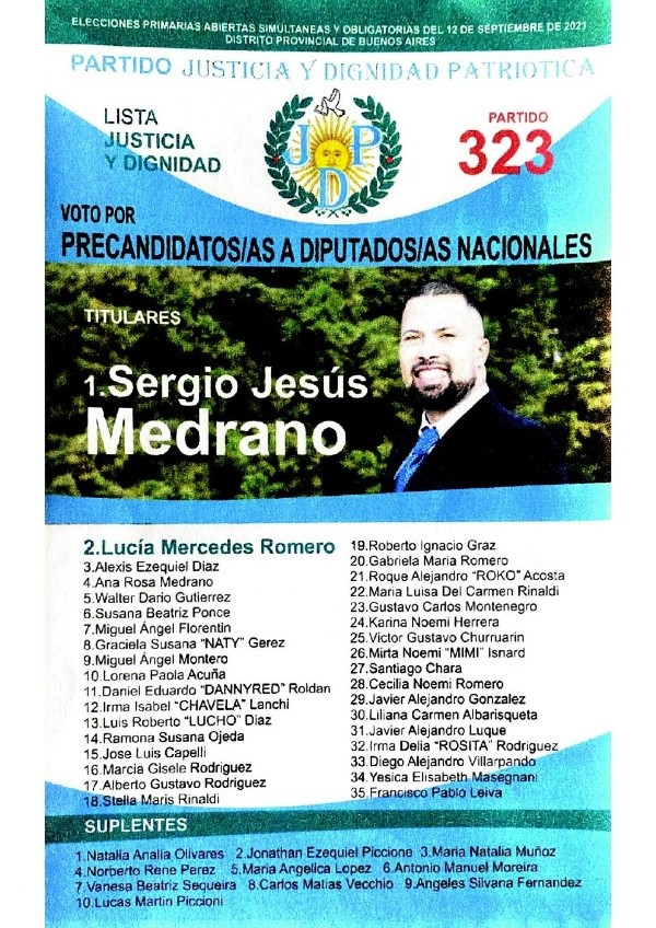 - Justicia y Dignidad Patriótica: Sergio Medrano – Lucía Mercedes Romero