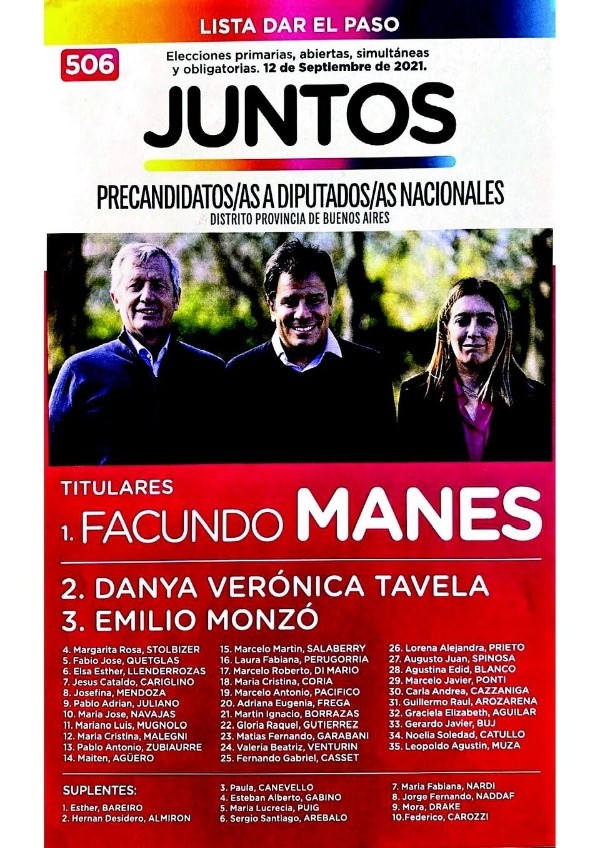- Juntos(ex Juntos x el Cambio) – Lista UCR: Facundo Manes – Danya Tavela
