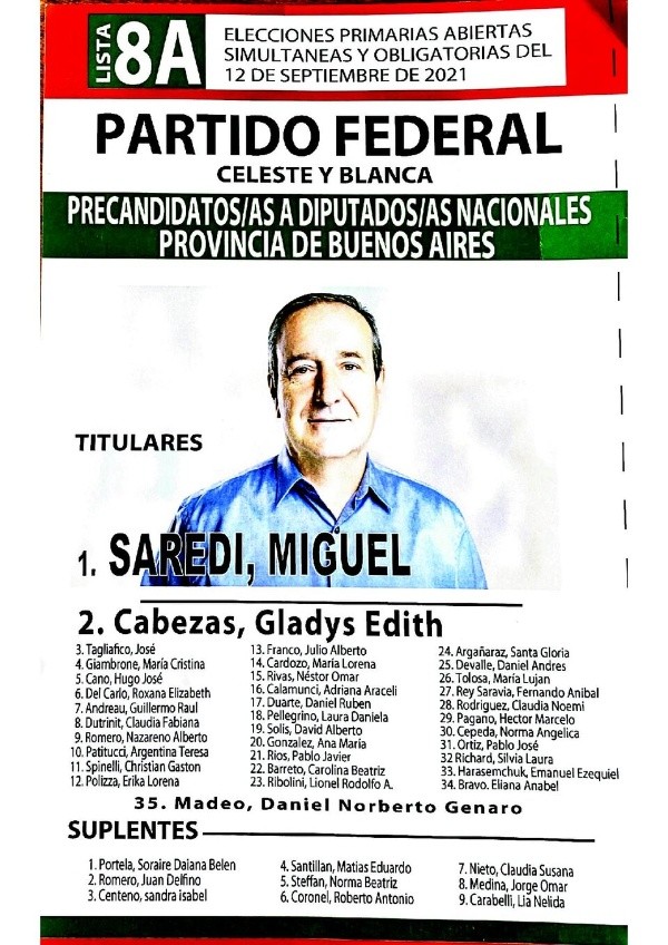 - Partido Federal: Miguel Saredi – Gladys Cabezas