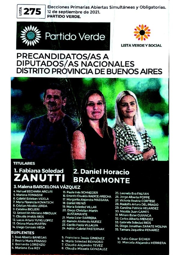 - Partido Verde: Fabiana Zanutti – Daniel Bracamonte