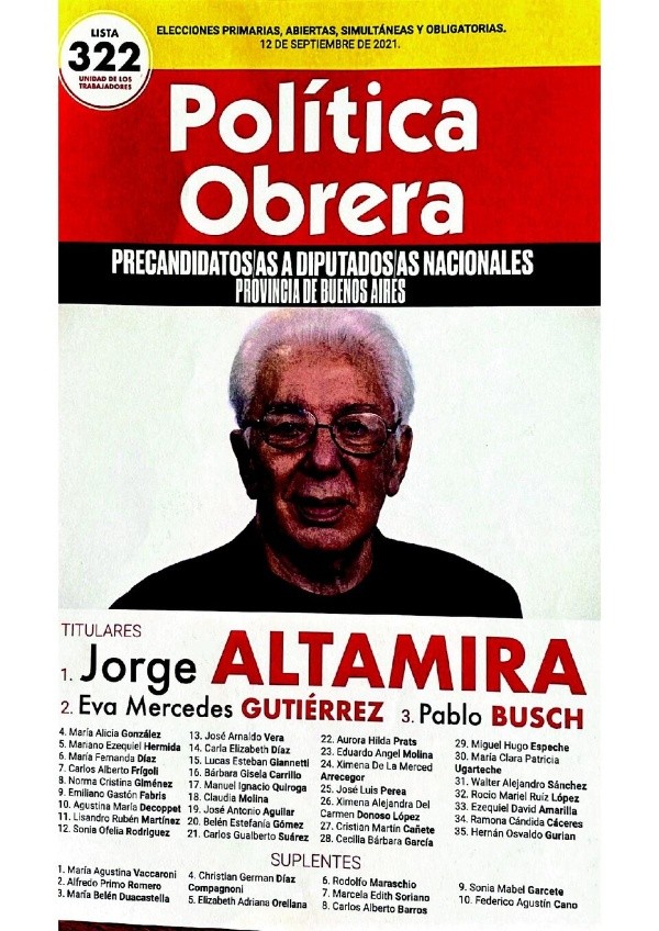 - Política Obrera: Jorge Altamira – Eva Mercedes Gutiérrez