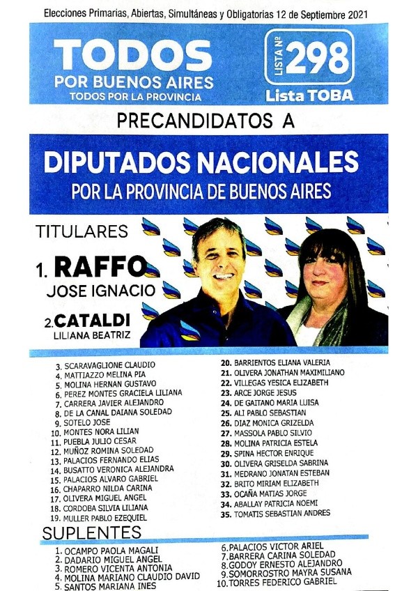 - Todos por Buenos Aires: José Raffo – Liliana Cataldi
