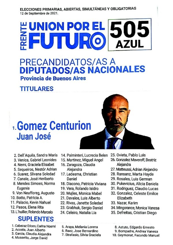 - Unión por el Futuro – Lista Azul: Juan José Gómez Centurión – Sandra Dell’Aquila